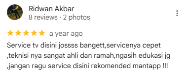 Dari TV mati total menjadi normal kembali! Kami telah menangani 2.000+ TV dengan tingkat kepuasan pelanggan 4.9/5 dan lebih dari 10 tahun pengalaman dalam service TV LED, LCD, dan Plasma.